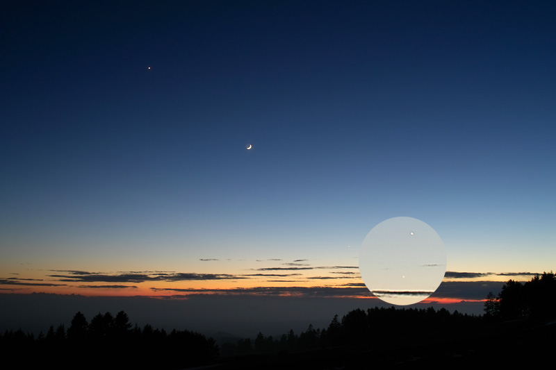 Allerdings will irgend etwas in mir die Größenverhältnisse nicht so ganz akzeptieren (Mond gegenüber Bergspitzen und Vordergrund)