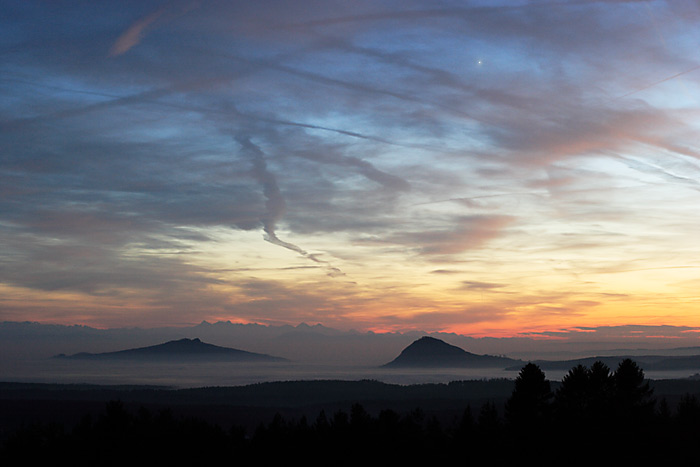 Ich kann dir versprechen, dass alles mit rechten Dingen zugeht[8)]. An dem Foto habe ich ausser der Verkleinerung und ein bisschen unscharfer Maskierung nichts verändert. Hierzu aber soviel: Mein Standpunkt ist die westlichste Spitze des Bodensees in Ludwigshafen. Die Kirche ist von meinem Aufnahmeort ca. 8-10 km entfernt. Die Berge dagegen (Bregenzerwaldgebirge und Allgäuer Alpen) sind auf der anderen Seite des Bodensees, also ca. 80 bis 100 km entfernt. So kommt es bei dieser Brennweite (effektiv 800mm) eben zu solchen Dimensionen.
