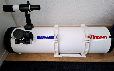130/650 (f/5) Newton-Teleskop von Vixen in absolut neuwertigem Zustand abzugeben. Der Newton ist ohne jegliche Gebrauchsspuren, ohne Kratzer und mit kristallklarem Spiegel.